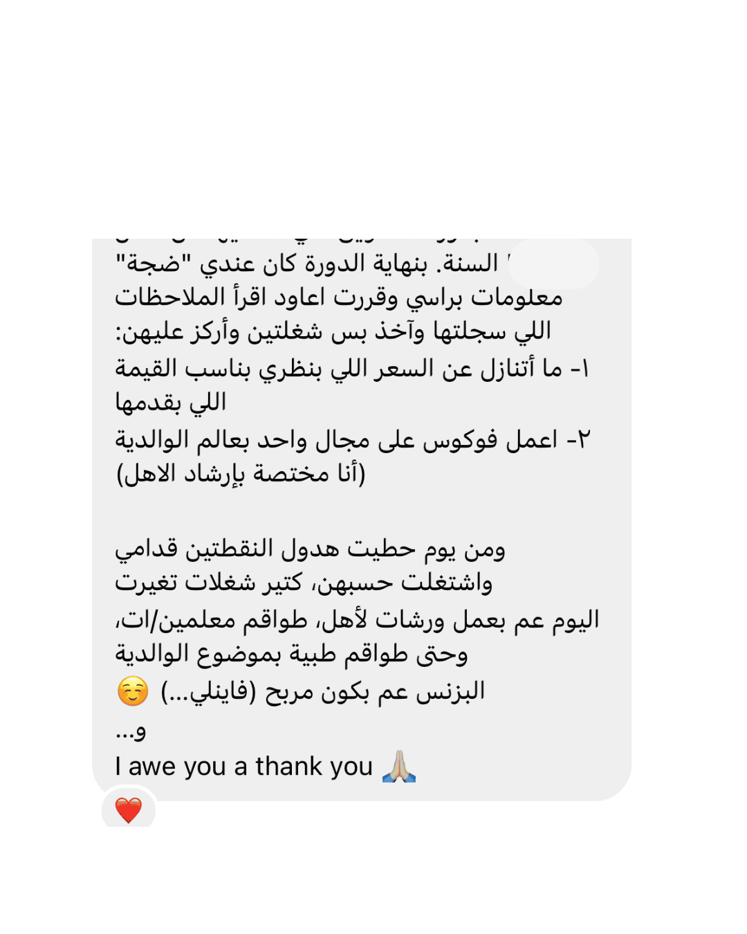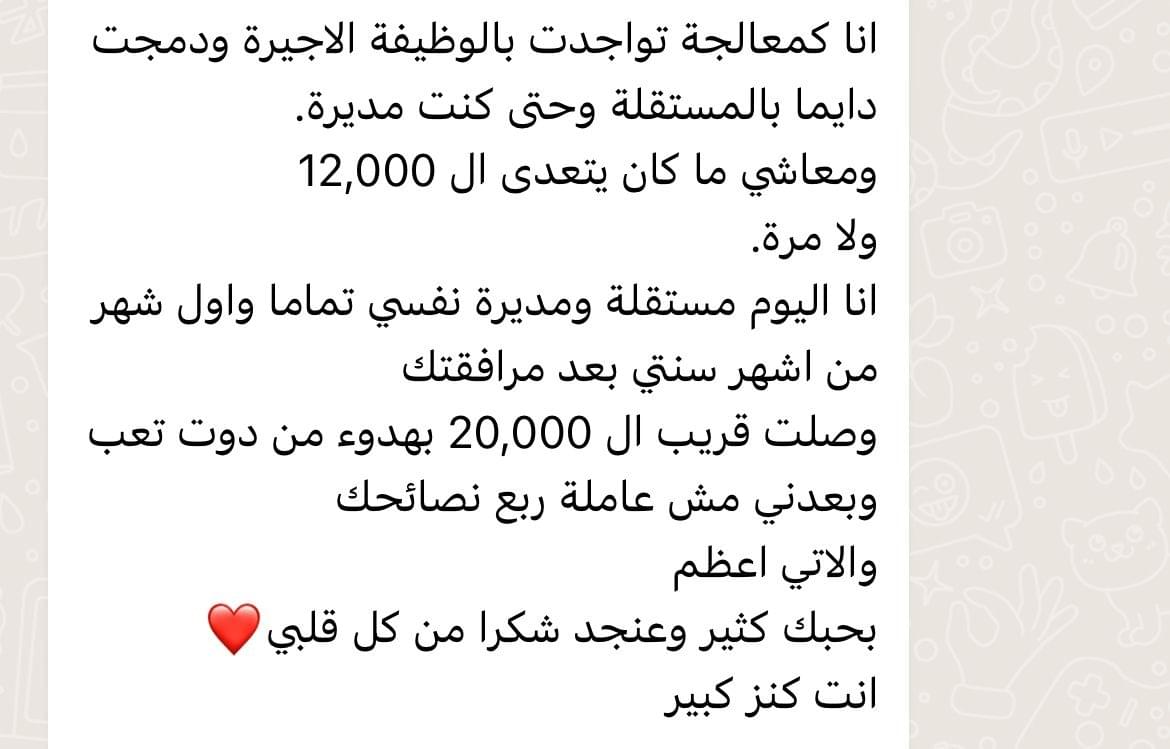 خبرة 10 سنوات في عالم التدريب والاستشارات حيث رافقت العشرات من رواد الأعمال في تطوير وإنجاح أعمالهم وتحقيق الربح